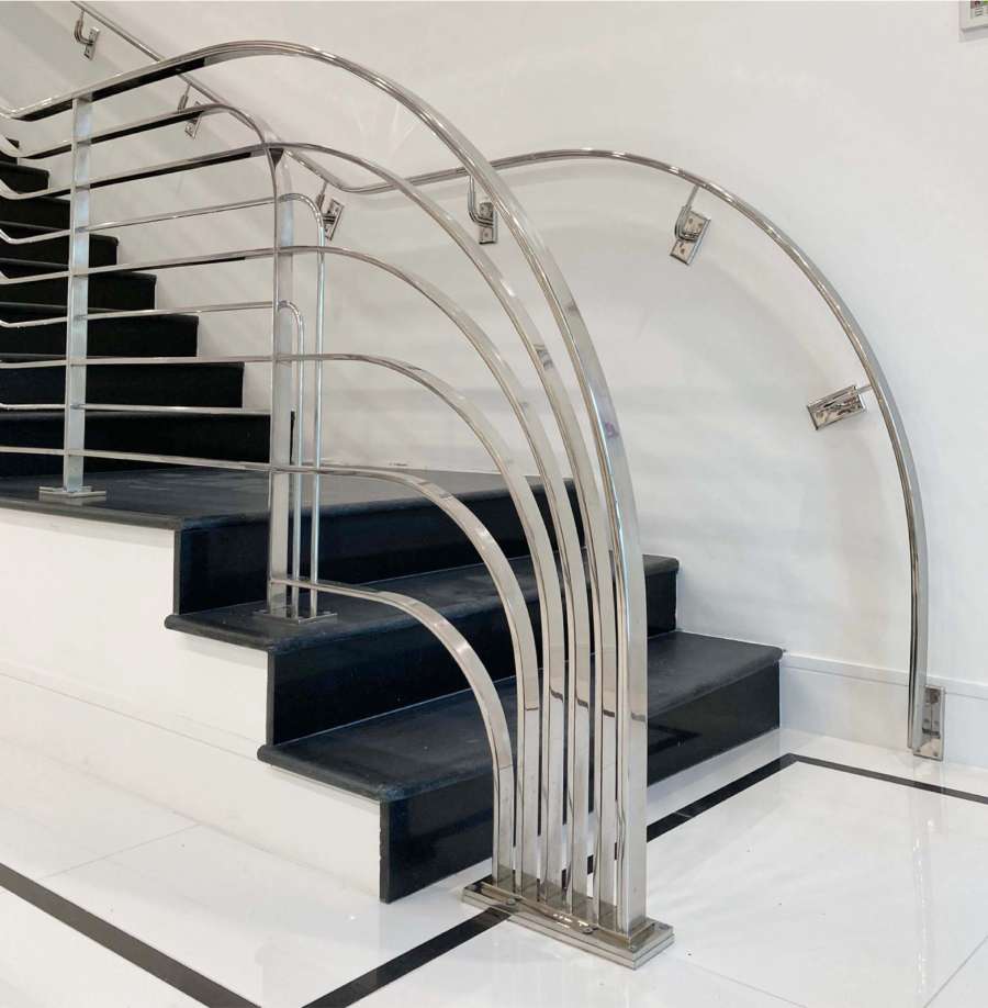 In a luxury Grand Cayman development, a custom stainless steel pool railing blends Art Deco elegance with functional safety. Its sculptural curves and geometric lines echo the architectural rhythm of the space, while marine-grade stainless steel ensures exceptional durability and corrosion resistance in constant contact with water.