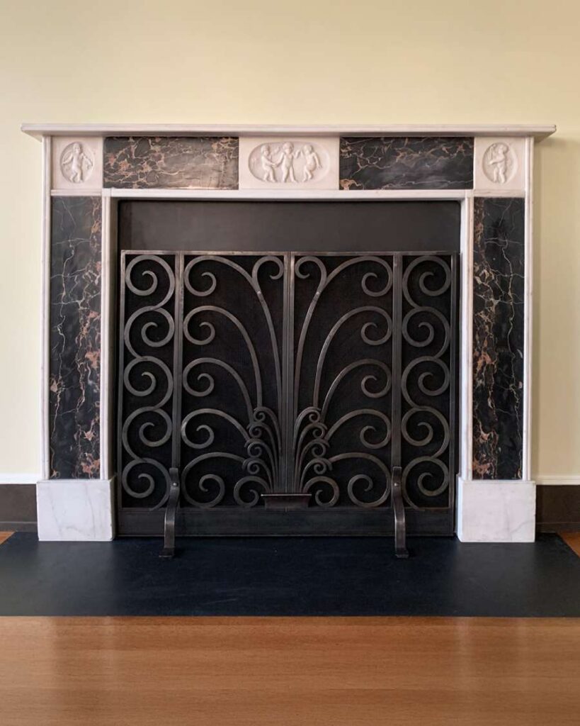 This collection of fireplaces was hand-forged in wrought iron, combining timeless craftsmanship with decorative artistry. Each screen showcases intricate scrollwork and stylized motifs, from fluid patterns to delicate birds perched in harmony. The pieces reflect both strength and refinement, designed to complement classical and contemporary interiors while celebrating the enduring beauty of ironwork.